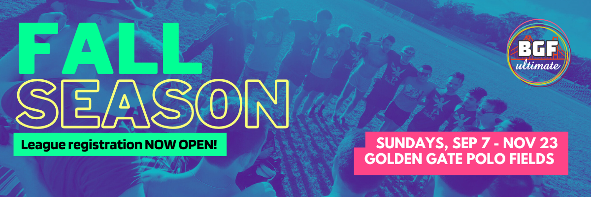 Big Gay Frisbee (BGF) is a queer, recreational ultimate frisbee league.